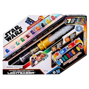 - CRIE SEU PRÓPRIO SABOR DE LUZ: Este brinquedo eletrônico Star Wars é composto por 10 cristais e 5 partes - uma lâmina extensível, efeito de explosão de força, tampa, tampa e núcleo - para que as crianças possam montar seu próprio sabre de luz