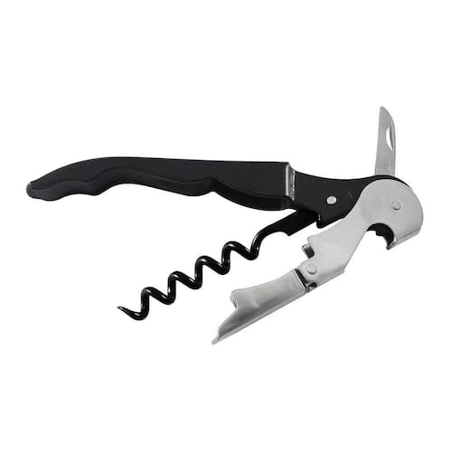 Descrição Contém: 01 Saca-Rolhas Abridor Multiuso Inox Kehome Saca-rolhas com 2 estágios com espiral de cinco curvas para rolhas compridas em aço inox para facilitar a retirada da rolha. Também possui um abridor de tampa de garrafa e um pequeno que funciona como cortador de cápsula. Tamanho: 12cm Cor: Preto Marca: Não Informado