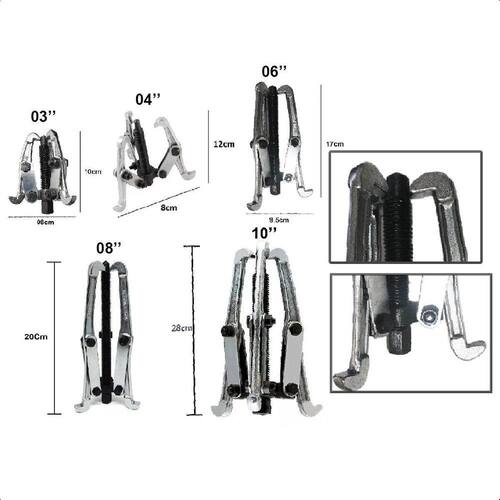Kit 5 Saca Polia e Rolamento 3 Garras 75 100 150 200 250 Mm - O kit sacador ideal para suas operações industriais. Feito em aço carbono de alta qualidade, oferece máxima eficiência e durabilidade. Com as 3 garras cromadas reversíveis, você pode sacar pelo lado externo ou interno.