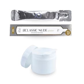 O Gel Classic Nude Glitter é um gel construtor para unhas que une resistência, versatilidade e sofisticação. Com viscosidade autonivelante e tecnologia de densidade estática, ele garante mais controle durante a aplicação. Em formato refil, no sachê com 14g, ele oferece praticidade e economia, com flakes violetas e partículas de glitter prateadas que proporcionam um acabamento elegante e moderno. Ideal para alongamentos de unhas e modelagens perfeitas, garantindo unhas duradouras e com brilho impecável. O pote branco evita desperdícios e vem para somar esse kit, com sua vedação confiável e design funcional, este potinho branco com colher e duas tampas é perfeito para a organização e conservação de seu gel favorito, mantendo-os sempre prontos para uso e em ótimas condições.