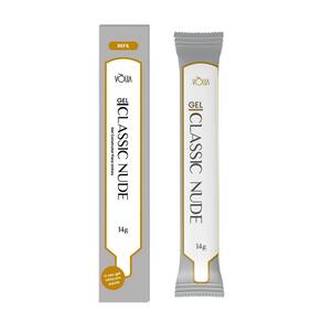 Contém: 01 - Gel Sachê Classic Nude Refil Unhas Alongamento LED/UV 14g, Vòlia 01 - Pote Branco com tampa 01 - Vedação encaixável antes da tampa 01 - Colher Plástica que pode ser armazenada por cima da vedação