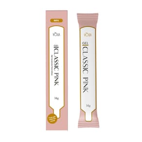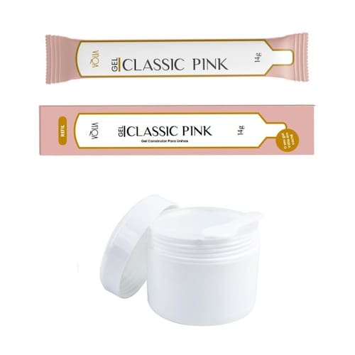 Contém: 01 - gel sachê classic pink refil unhas alongamento led/uv 14g, vlia 01 - pote branco com tampa 01 - vedação encaixável antes da tampa 01 - colher plástica que pode ser armazenada por cima da vedação