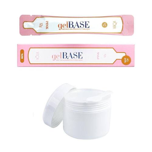 Contém: 01 - gel sachê base pink refil unhas alongamento led/uv 12g, vlia 01 - pote branco com tampa 01 - vedação encaixável antes da tampa 01 - colher plástica que pode ser armazenada por cima da vedação