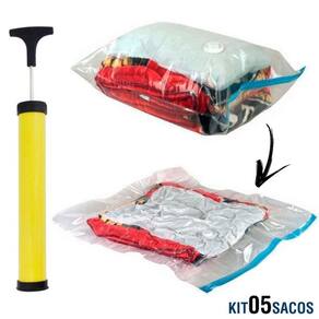 Saco à Vácuo Guardar Roupas 60x80 CM Kit 5 Peças + Bomba Sucção WESTERN