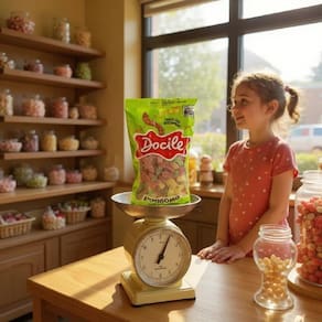 Tradicionais e deliciosas balas de goma nos sabores abacaxi, uva, limão, tangerina e morango.