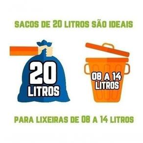 20 Litros Medida: 39cm x 58cm Cor: Preta Espessura de Revenda: 010 Espessura de Fábrica: 05 Ideal para lixeiras: de 08 a 14 litros