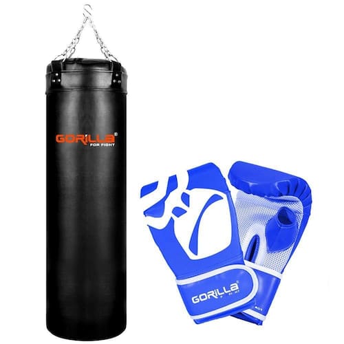 Saco De Pancada 120x100 + Luva Bate-saco Pro - Gorilla Cor: Azul O kit acompanha: 01 Saco De Pancada Gorilla Profissional 120x100 (vazio) - Gorilla 01 Par de Luva Bate-Saco PRO - Gorilla Saco De Pancada Gorilla Profissional 120x100 -Gorilla Ideal para treinos de atletas profissionais e amadores, indicado para aplicação de chutes e socos altos (cabeça) médios (peitoral). Confeccionado em policloreto de alta resistência, o saco de boxe possuí 120 cm de altura por 100 cm de circunferência (O tamanho total contando desde o fundo do produto até o término da alça fica em aproximadamente 135 cm de altura). Quatro pontas de apoio reforçadas com dupla camada de PU acompanhadas com argolas, correntes e gancho S, pronto para pendurá-lo O saco de pancada é enviado VAZIO e possuí um zíper na parte superior facilitando o enchimento. Especificações: Medidas: 120 cm de altura x 100 cm de circunferência; Produto enviado vazio; Peso suportado: até 70 kg; Materiais indicados para o enchimento: Retalhos: Em confecções (geralmente fornecem de graça ou são vendidas por quilopor um preço bem acessível). Estopas: Autopeças e lojas especializadas (são Vendidas por quilo por um preço bem acessível). Raspas de borracha: Empresas de recapeamento de pneus. Serragem: Encontrada em marcenarias e empresas que produzem esquadrias de madeira (também fornecem de graça ou são vendidas por quilo porum preço bem acessível). Luva Bate-Saco PRO - Gorilla Desenvolvida para conforto e proteção necessária ao atleta. A Luva Bate-Saco PRO Gorilla é fabricada em PU flexível com proteção acrílica-vinílica aumentando as propriedades de resistência e facilitando a higienização do produto. Ela é revestida com duas camadas de diferentes densidades dando maior conforto para o atleta. Possuí o fecho no punho em tiras aderentes facilitando a colocação e proporcionando um melhor ajuste a diferentes tamanhos de pulsos. Abertura no dedão; Indicações: Ideal para treinos em sacos de pancadas, manoplas e aparadores. Tamanho: Adulto Acompanham o produto: 01 luva bate-saco (par) Garantia: 07 meses Fabricado por Gorilla Indústria e Comércio LTDA. Produto 100% nacional.