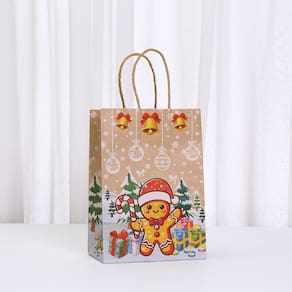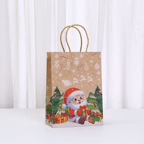 Material: papel Kraft Tamanho: 21* 15* 8 cm Peso: 500 g/Quantidade do pacote: 10 unidades Cores: mistura aleatória Material de papel Kraft durável Este conjunto de sacolas de presente é feito de papel kraft grosso com uma estrutura robusta, oferecendo suporte confiável para bebidas, lanches e itens pequenos, mantendo uma aparência natural e ecológica. Linda estampa de inverno de desenho animado do Papai Noel Com uma adorável ilustração do Papai Noel, essas bolsas adicionam uma atmosfera sazonal alegre, tornando-as atraentes para cafés de inverno, balcões de comida para viagem e ocasiões festivas. Design portátil confortável