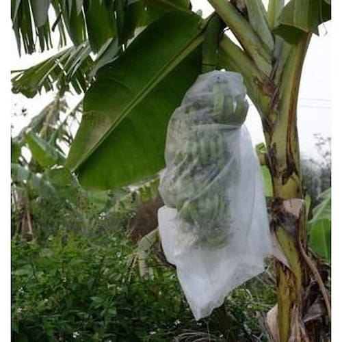 Sacos em TNT para proteção de Bananas, sobretudo produção orgânica. Esse tecido, ao mesmo tempo que protege contra pragas e reduz a utilização de defensivos agrícolas, permite que o produto receba a quantidade certa de água e sol.