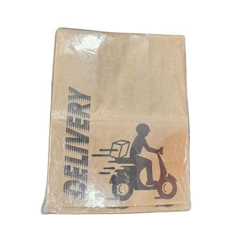 Saco de entrega Kraft, ideal para acondicionar alimentos com praticidade e segurança durante o transporte. Impresso na cor preta e feito de papel kraft resistente. Especificações: