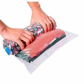Saco A Vácuo 40cm x 60cm Organizador de roupas, toalhas, sapatos etc... Saco organizador fabricado em PVC de alta resistência, reutilizável e impermeável. Ele protege contra odores, umidade, poeira, sujeira, mofo e insetos. Obs: Não precisa de aspirador ou bomba, processo feito manualmente com facilidade. Características: Material PVC Organiza e otimiza o espaço na mala e guarda roupas Medidas: Largura 40 cm, Comprimento 60 cm 3 meses contra defeitos de fabricação Observações: Imagem meramente Ilustrativa.