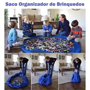 Um incrível saco organizador de nylon que irá revolucionar as bagunças provocadas pelos brinquedos das crianças, como legos, quebra cabeças, carrinhos, bolinhas, bonecos, bonecas e muitos outros.