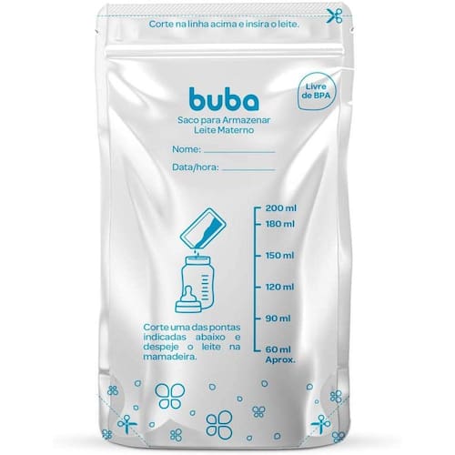 Saco para armazenar leite materno da buba é ideal para armazenar e transportar o leite de forma prática e higiênica. O plástico é resistente e possui um zíper duplo para evitar vazamentos, adequado para ser conservado no congelador. Deve ser descongelado em banho-maria fora do fogo e não deve ser utilizado no micro-ondas.