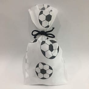 SACO PARA LEMBRANCINHA ESTAMPADO BRANCO BOLA FUTEBOL PRETO 0,13 X 0,25 m