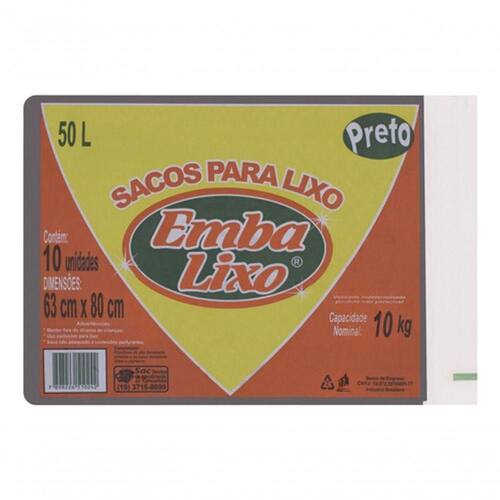 Saco Para Lixo 50l Embalixo 10 Unidades .. Sua satisfação garantida. Compre com segurança!Milhares já aprovaram. Seja o próximo!Qualidade comprovada. Adquira o seu sem preocupações. Marca: Não Informado