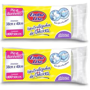 Saco de lixo para pia e banheiro - 38cm x 40cm Os sacos de lixo para pia e banheiro da embalixo são produzidos com excelente relação custo-benefício para os mais diversos usos e ambientes. Possui a tecnologia neutralizador de odores que inibe os odores indesejáveis, além do perfume lavanda, que deixa o ambiente mais agradável. Única no país a ter autorização de utilização de fragrâncias da iff international flavors & fragances para produção de sacos para lixo. Não contém fechos Validade indeterminada Mantenha fora do alcance de crianças Saco não adequado a conteúdos perfurantes Dimensões: 38cm x 40cm Quantidade: 2 pacotes, contendo 100 unidades.