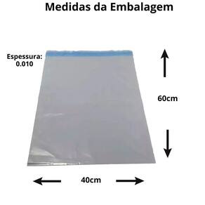 Largura: 20 cm boca do envelope . Comprimento: 30 cm + 3cm de língua para fechamento aba . Quantidade: 250 unidades Espessura: 0.010 micras ótima espessura para embalar, bem resistente Peso: 10 g