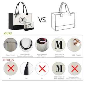 Alça de couro, botão de latão retrô e bolsa interna com zíper: nossa bolsa de lona inicial tem uma alça de couro graciosa e design de botão de latão retrô. Fonte bordada com monograma clássico e presente personalizado: cada sacola personalizada é individual usando um monograma de alta densidade de fio em uma fonte preta clássica, permitindo que você dê um toque pessoal ao seu presente. Presentes de aniversário para mulheres: nossa bolsa de praia é ótima para muitos itens, como laptops, toalhas, etc. A bolsa de praia personalizada é adequada para muitas ocasiões, como trabalho, fim de semana. Capacidade extra grande e durável: 45 cm de largura + 32 cm de altura + reforço inferior de 19,8 cm com uma alça de lona reforçada de 61 cm. Grande o suficiente para guardar todos os seus acessórios diários. A bolsa grande é feita de lona resistente 100% de 368 g. Os pontos duplos tornam a bolsa preta forte o suficiente para guardar muitos itens sem quebrar. O botão de metal na parte da junta torna as alças longas suficientemente fortes. Alças de ombro longas se ajustam ao conforto do seu ombro. Lavar à mão e reutilizável: nossa bolsa inicial é feita de lona 100% natural de 368,5 g. A lona pesada por fora e por dentro tem um forro que não se molha. A bolsa utilitária é facilmente lavável à mão e de longa duração. (Observação: lavagem à máquina não é recomendada.) Você pode usar esta bolsa de lona reutilizável por um longo tempo e também pode ajudar você a reduzir seu impacto no meio ambiente. - Alça de couro, botão de latão retrô, fita de bolinhas e bolsa interna com zíper: nossa bolsa de lona inicial tem uma alça de couro graciosa e design de botão de latão retrô. A bolsa com zíper facilita o armazenamento de seus pequenos itens importantes, como telefones, chaves e óculos, e fácil acesso. Além disso, tem outros dois bolsos para você organizar seus itens de forma mais organizada e guardar seus pertences de forma mais eficaz. O rodapé faz com que a bolsa de fim de semana da menina mantenha sua forma e fique sobre a mesa. - Fonte bordada com monograma clássico e presente personalizado: cada sacola personalizada é individual usando um monograma de alta densidade de fio em uma fonte preta clássica, permitindo que você dê um toque pessoal ao seu presente. Portanto, a sacola de presente pode ser um presente perfeito para mulheres, noivas, senhoras, mães e amigas. Além disso, a bolsa de presente com monograma pode ser uma maneira adorável de agradecer às damas de honra, dama de honra, mãe da noiva/noivo e convidadas, pelo amor e apoio no seu dia especial. - Presentes de aniversário para mulheres: nossa bolsa de praia é ótima para muitos itens, como laptops, toalhas, roupas. A bolsa de praia personalizada é adequada para muitas ocasiões, como trabalho, fim de semana, praia, casamento, chá de panela, presente de aniversário, feriado, despedida de solteiro, escritório, ioga, compras de supermercado, presentes de apreciação exclusivos, presentes de aniversário de 30 anos para ela, presentes de noiva, presentes de aniversário para amigas. - Capacidade extra grande e durável: 45 cm de largura + 32 cm de altura + reforço inferior de 19,8 cm com uma alça de lona reforçada de 61 cm. Grande o suficiente para guardar todos os seus acessórios diários, incluindo roupas, documentos, lancheiras, bebidas e lanches. A bolsa grande é feita de lona resistente 100% de 368 g. Os pontos duplos tornam a bolsa preta forte o suficiente para guardar muitos itens sem quebrar. O botão de metal na parte da junta torna as alças longas suficientemente fortes. Alças de ombro longas se ajustam ao conforto do seu ombro. - Combinação perfeita de bolsa de maquiagem: esta bolsa feminina também tem uma bolsa cosmética independente. A combinação de bolsas grandes e pequenas pode atender melhor às suas diferentes necessidades. Ambas são feitas de lona 100% natural de 368,5 g. A bolsa utilitária é facilmente lavável à mão e de longa duração. (Observação: lavagem à máquina não é recomendada.) Você pode usar esta bolsa de lona reutilizável e também pode ajudar você a reduzir seu impacto no meio ambiente.