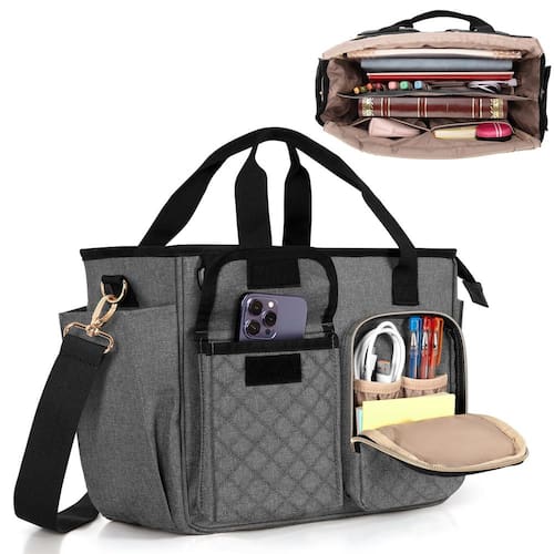 Sacola bíblica LUXJA grande com bolso para garrafa de água cinza