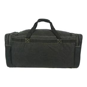 Confeccionada em lona reforçada, toda forrada. Tem o compartimento principal grande e fechamento por 2 zíperes, 2 bolsos laterais com zíperes e bolso frontal grande com zíper. Base em nylon na parte de baixo da bolsa para apoio no chão.