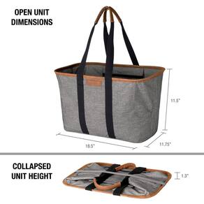 CleverMade Bolsa dobrável LUXE, cinza mesclado/preto - sacola estruturada de 30 litros com alças e fundo reforçado - sacola de compras reutilizável, sacola de compras, sacola utilitária - Versátil – Abra a sacola utilitária e use-a como um organizador para acessórios de trabalho, coloque recipientes de comida e um cobertor para um piquenique na praia ou parque, ou mantenha no carro e use como sua nova sacola de compras - Dobrável – o design dobrável torna esta bolsa de viagem perfeita, suporte de lavanderia ou presente para um professor. Basta fechar a bolsa quando não estiver em uso e guardar praticamente em qualquer lugar - Reutilizável – Estas cestas são uma ótima solução para compras e armazenamento doméstico. Diga adeus ao papel frágil e aos sacos plásticos que acabam no lixo. - Fácil de transportar: duas alças longas tornam esta bolsa grande confortável para carregar com uma mão enquanto você passa o dia. O bolso interno com zíper é perfeito para guardar seus pertences enquanto você faz tarefas - Dimensões – SnapBasket de 30 L 45 cm C x 29 cm L x 29 cm A quando aberto e dobra até menos de 5 cm quando dobrado - o peso total é 1. 11 kg. e a capacidade de transporte é de 13,6 kg.