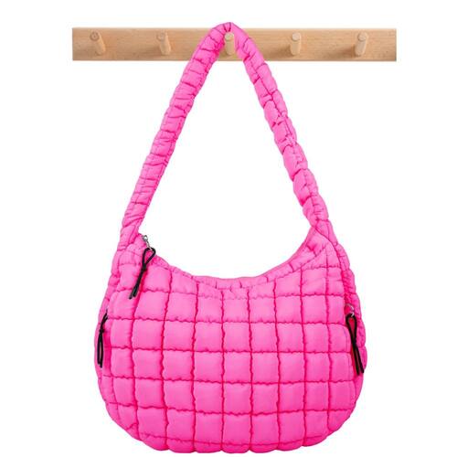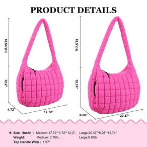 Sacola acolchoada acolchoada, bolsa de ombro tiracolo grande com zíper, bolsas Bubble Hobo de nylon, bolsa de viagem com alça superior para mulheres, bolsa acolchoada de grandes dimensões, bolsa acolchoada macia e grande (vermelho-rosa)