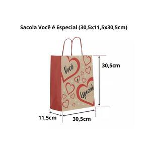 Sacola Kraft Sacola De Presente Dia Das Mães Tam GG com 100Un Kit 100 Sacola Karft Presente Voce É Especial 30,5x11,5x30,5 cm Dimensões: Largura 30,5 x Lateral 11,5 x Altura 30,5 cm.