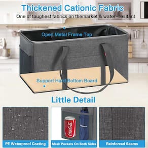 - ?Reinforced Design?Grocery tote bag metal wire frame on the open top so it stays open and the sides are rigid it is light to carry and very long-lasting. The reusable grocery bags up for easy loading and unloading. the totes are made from thick polyester, the interior features pe waterproof coating provides an excellent waterproof performance to keep stored items dry, it is lightweight yet long-lasting for grocery , shopping, luggage, picnics, and storage