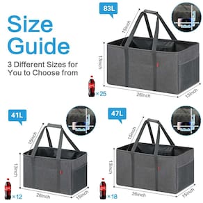 - ?Up to 80lbs Load-bearing?Eco friendly large foldable grocery tote bag & reusable grocery bags provides ample shopping and storage space with capacity 83L. dimensions of utility tote bag are 26×15×13 inch with approximately 15" handle drop which allows with a bearing weight capacity of 80 pounds when full of groceries, spacy enough to store 25 bottles of coke (1.25L)