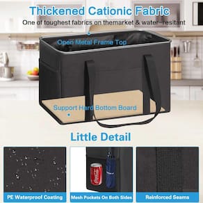 - ?Reinforced Design?Grocery tote bag metal wire frame on the open top so it stays open and the sides are rigid it is light to carry and very long-lasting. The reusable grocery bags up for easy loading and unloading. the totes are made from thick polyester, the interior features pe waterproof coating provides an excellent waterproof performance to keep stored items dry, it is lightweight yet long-lasting for grocery , shopping, luggage, picnics, and storage