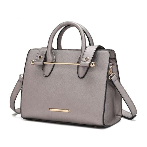 A bolsa Malaya é um acessório chique e versátil feito de couro vegano Saffiano de luxo com enfeites dourados. Possui uma silhueta estruturada com fecho de barra e zíper superior para fechamento seguro. O interior é totalmente forrado e bem organizado, com dois bolsos deslizantes e um bolso de parede com zíper. A bolsa vem com uma alça superior e uma alça de ombro ajustável para opções de transporte versáteis. Tem uma base plana com pés para maior estabilidade. BOLSOS: O interior possui um bolso de parede com zíper e dois bolsos deslizantes. Medidas: 10,25” L x 7,8” A x 5,5” D Alça removível e ajustável: se estende até 25”