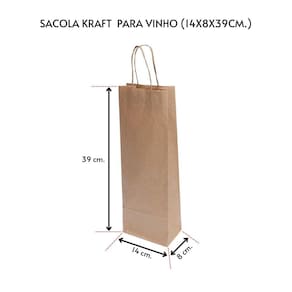 Sacola ecologicamente correta papel 100% kraft , muito bonito e resistente. Da segurança, beleza, charme no transporte do seu vinho. Valoriza o produto e a prestação de serviço da venda de sua loja.