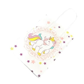 As sacolas são feitas em papel kraft resistente e possuem dimensões de 17,5 x 8,5 x 21,5 cm, proporcionando espaço suficiente para acomodar diferentes tipos de presentes e lembrancinhas. Além disso, as ilustrações de unicórnio adicionam um toque mágico e divertido à embalagem.