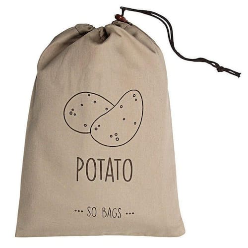 Sacola Para Conservar Alimentos - Potato Forrado com tecido especial, esta bag mantém as suas batatas frescas, evitando que brotem ou apodreçam. Basta deslizar o cordão para fechar e guardar dentro ou fora da geladeira. Preservando a batata por até 4 semanas. Ideal também para gengibre, cúrcuma, cara, inhame, mandioca e todos os tipos de raízes secas com exceção da cenoura. Não colocar junto outros tipos de frutas ou vegetais. Armazenar sem nenhum tipo de embalagem ou saco plásticos. Não guardar nada molhado ou já cortado. À terra e nós agradecemos a sua compra. Cor marrom Tamanho: único - 100% algodão - durável, reutilizável e lavável. Dimensões do produto: 25 cm largura x 33 cm altura | peso: 64 gramas Manter fora do alcance das crianças. Validade indeterminada. Produto não perecível. Industria brasileira. Modo de lavar: lavar à mão, não alvejar, não centrifugar e não passar.
