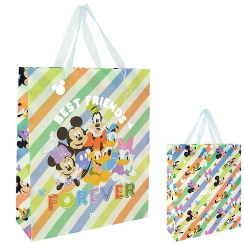 A Sacola para Presente MICKEY DISNEY com Alça de seda combina praticidade e estilo para surpreender a todos em ocasiões especiais. Seu tamanho amplo é ideal para embalar presentes de maneira elegante e prática. Ela é ideal para quem quer caprichar na apresentação do presente e reutilizar com criatividade