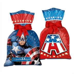 Leve para casa um pedacinho do universo Marvel com as Sacolas Plásticas Capitão América - Pacote com 12 Unidades!