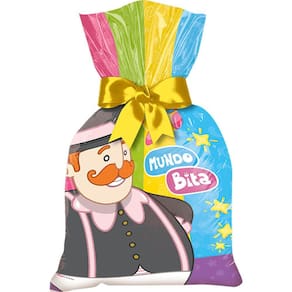 Destaque a praticidade e a alegria da sua festa com as Sacolas Plásticas Mundo Bita de 14x27cm - Pacote com 12 Unidades!