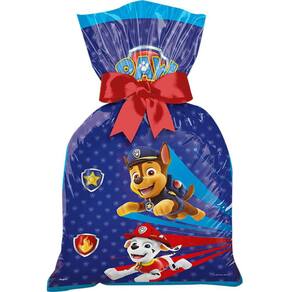 Conjunto com 12 sacolas plásticas temáticas da Patrulha Canina, ideais para presentear os participantes da festa.
