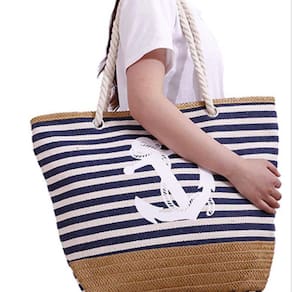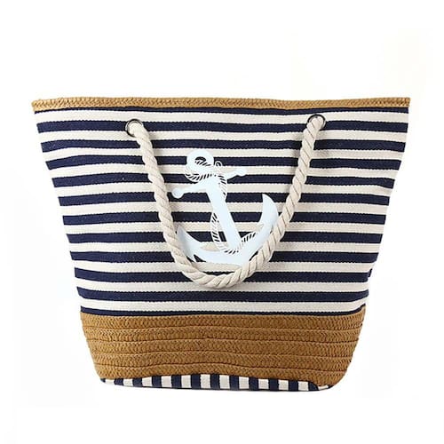 Bolsa de Praia com Estampa de Âncora e Alça de Corda