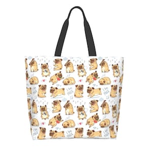 Sacola atraente Os produtos de sacola foram criados por artesãos experientes. A bolsa é feita 100% de tela. Você pode obter uma linda sacola. Características: É linda, estampa em 2 lados. Chame a atenção. Lavar separadamente à mão em água fria ou lavar a seco. - [Bolsa grande] Dimensões com 50 x 40 x 15 cm. - [Material] A bolsa é feita de poliéster leve e resistente, à prova d'água e sem fecho de zíper. Esta sacola é reforçada e tem costura fina. - [Design casual] Design com estampa fofa. A bolsa tem um compartimento principal que é grande o suficiente para acomodar suas necessidades diárias. E um pequeno bolso interno que pode colocar pequenos itens. Sem fecho de zíper. Pode ser usada como bolsa de ombro. - [Fácil de lavar] A sacola reutilizável é lavável à mão e na máquina, não desbota, a bolsa de lona mantém cores brilhantes mesmo vários usos. - [Amplamente usada] Fácil de combinar com roupas do dia a dia e idealmente projetada para o uso diário. A bolsa pode ser levada para compras, para a praia, festa, trabalho, ioga.