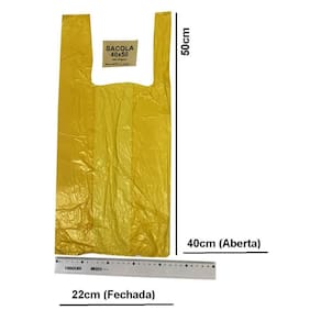- A Sacola Plástica Méd Amarela possui dimensões de 40 x 50 cm, sendo adequada para diversos tipos de produtos.