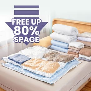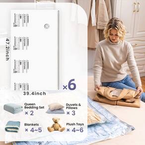 TAILI Sacos de armazenamento a vácuo economizam espaço, sacos de armazenamento a vácuo para roupas, roupas de cama, cobertores, colchas e brinquedos de pelúcia. O pacote com 8 bolsas economizam mais 80% de espaço de armazenamento para seus guarda-roupas e malas. A válvula de ar atualizada dos nossos sacos espaciais é adequada para a maioria dos aspiradores de pó no mercado. A bomba manual é anexada gratuitamente e cada bolsa é fornecida com um controle deslizante, fácil de usar nossas bolsas de armazenamento. - Sacos de vácuo de tamanho enorme: inclui 6 pacotes (47 × 39 polegadas) sacos de vácuo jumbo XXL que são perfeitos para roupas enormes, roupas de cama, edredons, colchas, cobertores, brinquedos de pelúcia, separação de travesseiros. Oferece mais opções de armazenamento, adequado para vários tamanhos de itens. Ideal para armazenamento doméstico, viagens ou mudança - Aumente mais espaço de armazenamento: nossas bolsas de armazenamento a vácuo com zíper lateral longo oferecem melhores soluções de armazenamento e economizam 3 vezes espaço por compressão rápida em pouco tempo. Guarde suas roupas, roupas de cama, edredons, cobertores, travesseiros e muito mais, ajuda você a economizar mais em menos espaço - Sistema de fechamento eficiente: funciona com aspirador de pó padrão. Basta colocar os itens em nossa bolsa a vácuo de armazenamento, selar o zíper, abrir a válvula, sugar o ar e fechar a válvula. Afinal, guarde a bolsa comprimida no armário, embaixo da cama ou onde você quiser - Design fácil de usar: a vedação de zíper lateral longa facilita a colocação de itens e reduz o incômodo de dobrar itens. Ótimo sistema de fechamento e o controle deslizante incluído ajudam a selar melhor. Enquanto isso, instruções claras de uso são impressas nos sacos, facilitando o uso desses sacos a vácuo - Durável e reutilizável: feitas de material forte PA e PE, nossas grandes bolsas economizadoras de espaço são laváveis e reutilizáveis, protegendo repetidamente suas roupas e colchas. Com o design lateral exclusivo, agiliza sua embalagem. Oferece compressão máxima e economiza espaço no seu armário ou mala.