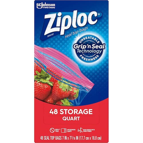 Ziploc Sacos de armazenamento, para alimentos, sanduíches, organização e mais, vedação inteligente com zíper Plus, 48 unidades