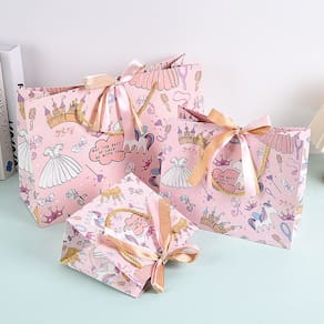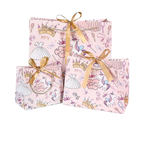 Material: cartolina branca Tamanhos: Pequeno 18* 10* 16 cm Peso: 50 g; Médio 25* 12* 20 cm Peso: 70 g; Grande 36* 12* 24 cm Peso: 98 g Quantidade: 3 unidades Papel cartão branco resistente: feito de papelão branco grosso com uma superfície lisa, oferecendo uma estrutura confiável e uma aparência premium limpa. Estampa fofa de unicórnio: a arte de unicórnio em tons pastéis suaves oferece um estilo divertido inspirado em INS, amado tanto por crianças quanto por pais. Alça de fita com laço: design portátil confortável com acabamento em laços de fita dupla para um toque elegante e decorativo. Uso em várias ocasiões: escolha ideal de sacola de presente para aniversários, lembrancinhas, recompensas em sala de aula e mesas de comemoração. Três tamanhos práticos: inclui sacolas pequenas, médias e grandes para guardar lanches, brinquedos, acessórios ou surpresas de festas.