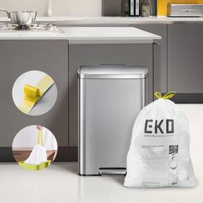 EKO Rolo de fácil distribuição de 60 sacos de lixo de cozinha com cordão extra forte - sacos de lixo de 13 galões (40L-60L) 1 pacote, código F