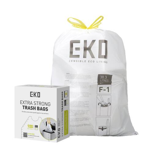 Sacos de lixo de cozinha EKO Easy-Dispense Roll de 100 unidades com cordão extra forte — sacos de lixo de 8 galões (30,3 L), 1 pacote, ajuste justo Code F-1