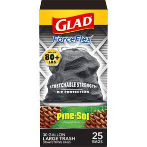 Glad Sacos de lixo, sacos de lixo grandes com cordão ForceFlex, 30 galões, perfume autêntico Pine-Sol, 25 Ct, pacote pode variar