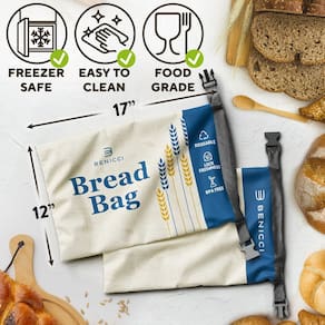 - Fechadura dupla para maior frescor — Com um exclusivo fecho de enrolar e clipe e um zíper, nosso saco de pão reutilizável fornece uma vedação hermética que reduz a exposição ao ar, preservando a textura e o sabor do pão por dias, seja no balcão ou no freezer.