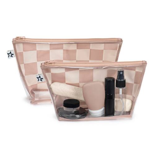 Tiny Twinkle As bolsas de viagem são uma excelente escolha para organizar acessórios como cosméticos, eletrônicos, produtos de higiene pessoal, lanches, materiais de arte e muito mais! Útil para viagens de longo prazo ou do dia a dia, os tamanhos e as frentes transparentes os tornam compatíveis com as companhias aéreas e fáceis de usar. Sem PFAS e BPA. O conjunto inclui 2 tamanhos convenientes de bolsas.
