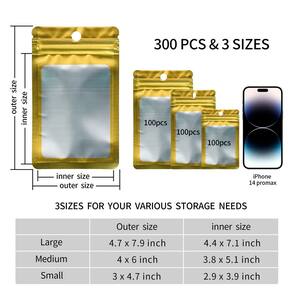 -?O pacote inclui?Você receberá 100 unidades de bolsas com zíper para janelas com 3 tamanhos diferentes, 300 unidades no total. Os três tamanhos são 3 x 4,7 polegadas, 4 x 6 polegadas e 4,7 x 7,9 polegadas, correspondendo à maioria das necessidades diárias de nossas vidas.
